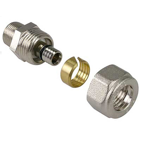 -Sa jedne strane poluspojnice smešten je kompresioni spoj za cev, a sa druge spoljašnji navoj za armaturu.
