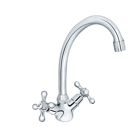 🚰 Dvoručna baterija za sudoperu 🕳️ Montaža na jedan otvor 🎩 Rustični ROMA izliv 💧 Klasa protoka S 💦 NEOPERL® Honeycomb perlator 🔧 Flühs® LIFETIME keramički gornji delovi ✋ Metalni rukohvati 🔇 Klasa bučnosti I