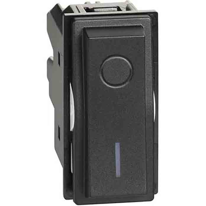 BTicino Living Now prekidač 1M 2P 16AX 250V crni KG4002 ⬛ Living Now prekidač 2P 16AX 250V – crni (KG4002) 🔘 Rocker klackalica – jasna “1/0” indikacija 🧩 1M modul – Living Now sistem 🧱 Ugradna montaža (flush) – snap kačenje 💡 Opcija signalne/orijentacione LED 🔧 Šrafni terminali – fleks/kruti kabl 📎 Presek provodnika 1.5–2.5 mm² 🛡️ IP21 zaštita, IK04 otpornost 📌 Obavezna maska: KG02