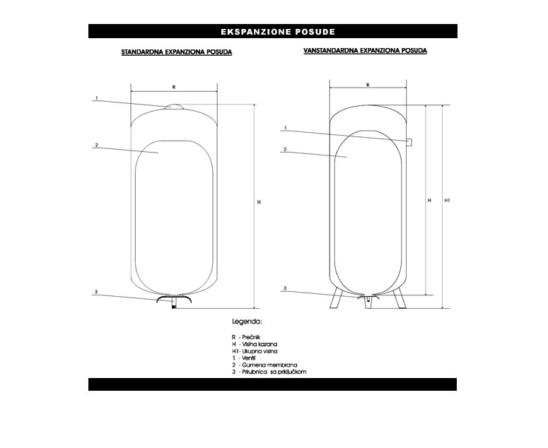 2. **Kompaktan oblik i zidna montaža** – valjkasti dizajn i nosač omogućavaju ugradnju na zid, pa posuda zauzima minimalan prostor u kotlarnici.