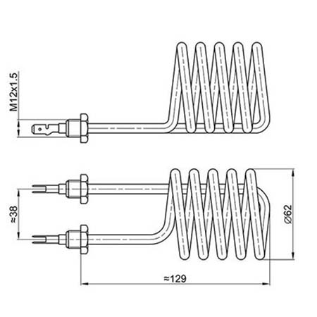 Električni grejni elementi za zagrevanje vode u protočnim visokomontažnim i niskomontažnim bojlerima, kapaciteta od 5 do 10 L, proizvode se od bakarnih cevi i mogu biti površinski zaštićeni slojem kalaja, nikla ili cinka.