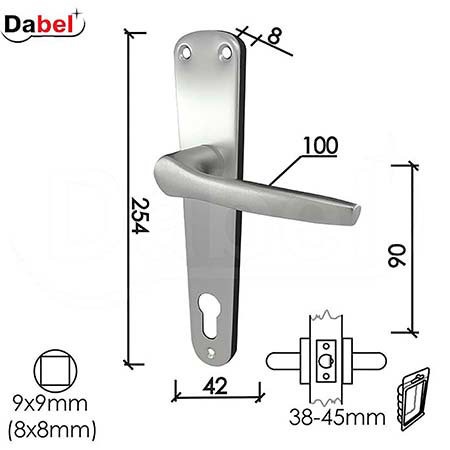 Kvaka štit za vrata DABEL DOLČE-S F1 srebrna 90/42/254/8/100/9 mm cilindar 0101026