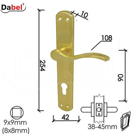 Predviđena je za montažu na drvena vrata debljine 38–45 mm, sa osovinom 9x9 mm.