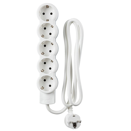 Produžni kabl Legrand 694555 je ultra-tanak model sa 5 šuko utičnica (2P+E), namenjen za univerzalnu unutrašnju upotrebu u domaćinstvu, kancelarijskim prostorima i radnim stolovima. Podržava maksimalnu snagu od 3680 W i radi na nominalnom naponu od 230 V. Kao i ostali STD modeli, jedna utičnica postavljena je pod uglom od 90°, što omogućava priključenje transformatora ili većih punjača bez blokiranja ostalih utičnica.