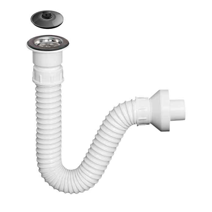 Sifon lavaboa fleksibilni jednodelni sa čepom i rozetnom S-100000