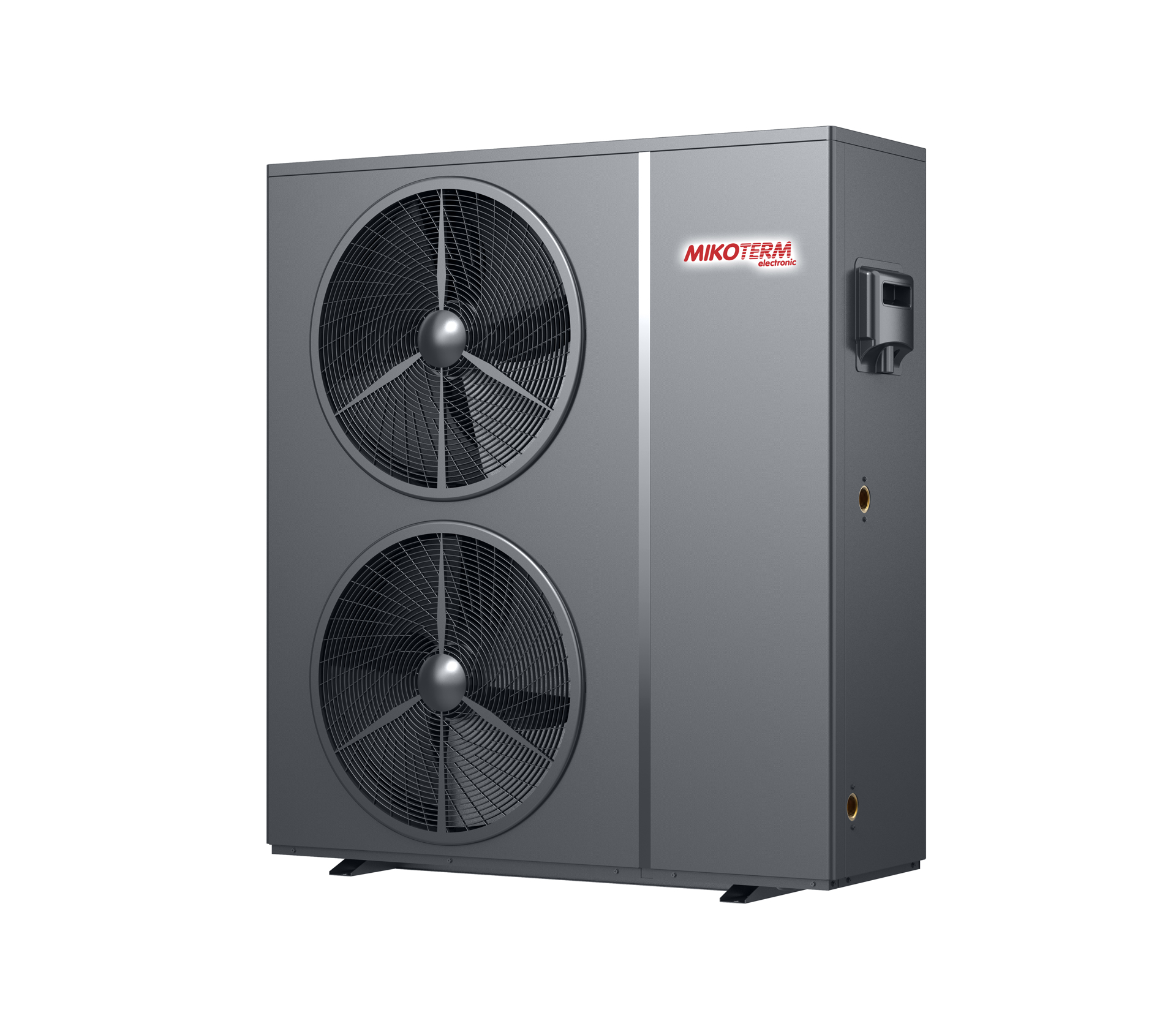 Mikoterm toplotna pumpa vazduh-voda, je namenjena za grejanje, hlađenje i pripremu sanitarne tople vode (DHW). Na raspolaganju su 5 modela u rasponu snaga od 9 do 26 kW. Sve mašine su opremljene kompresorima i pločastim izmenjivačima svetski poznatih brendova. Kompresori su zasnovani na EVI naprednoj tehnologiji sa visokim stepenom iskorišćenja koji je karakterističan za ove uređaje u celini. Klasa energetske efikasnosti na temperaturama polaznog voda 35 ⁰C (za podno grejanje) je A+++, a klasa na temperaturi od 55 ⁰C je A++. Maksimalni stepen iskorišćenja (COP) je od 4,14 do 4,27. Osnovne karakteristike su date tabelarno i svaka jedinica u sebi sadrži sledeću dodatnu opremu: električni kotao za podršku rada toplotne pumpe, cirkulacine pumpe sa frekventnom regulacijom i PWM vođenjem, odzračno lonče, sigurnosni ventil, ekspanzionu posudu, ECM motor ventilatora. Standardno se isporučuju sa gumenim amortizerima za oslanjanje i naprednim kontrolerom (sa toucscreen-om u boji) za upravljanje koji je veoma intuitivan i jednostavan za korišćenje uz mogućnost WiFi konekcije. Posebna prednost kod ovih mašina je mogućnost povezivanje na servisni klaud proizvođača, kojim se daljinski može pratiti rad mašine i utvrđivati svaki proces u radu ili prilikom zastoja. Na taj način serviser može da se informiše u svakom trenutku o statusu rada vaše mašine. Ove toplotne pumpe se preporučuju za objekte koji su dobro izolovani, prema važećim standardima i normativima i koji su opremljeni podnim (zidnim, plafonskim) grejanjem kao i kod objekata kod kojih je distribucija toplote putem ventilo-konvektora (Fan-Coilera). Sistem grejanja treba biti projektovan tako da odgovara niskotemperaturnom režimu. Takođe, minimalna količina fluida u sistemu koja se preporučuje je 10-12 l/kw i ukoliko ovo nije zadovoljeno, potrebno je predvideti mini-bafer tank. Radni fluid u sistemu mora biti rastvor antifriza za minimalno -20 ⁰C, ali maksimalne koncentracije do 50%. Za svoj rad, uređaj koristi freon R32 koji je veoma efikasan (10% više od R410A) i koji ima mali uticaj na prirodno okruženje. Spada u grupu zelenih freonskih gasova.