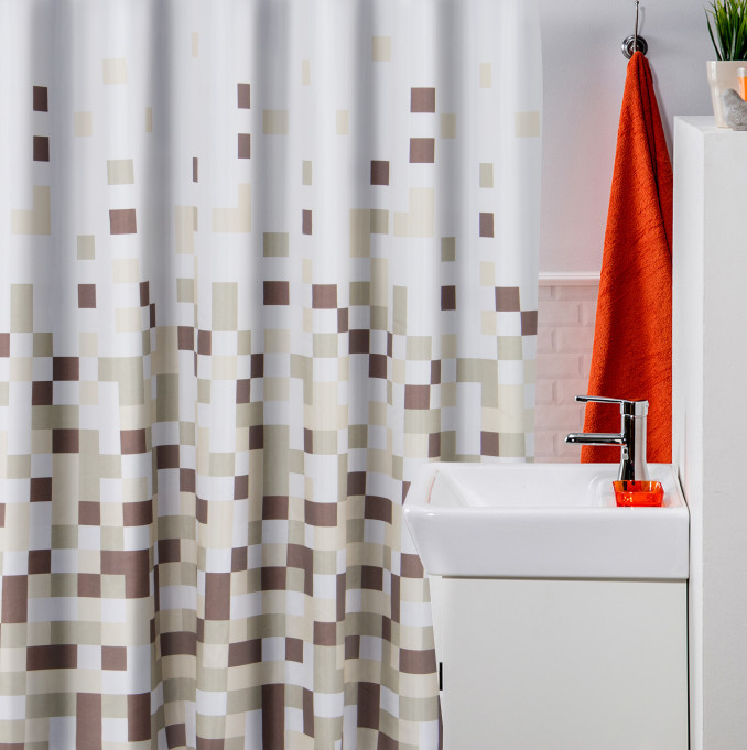 Kupatilska zavesa MZ 010 izrađena je od kvalitetnog poliestera koji je otporan na vlagu, buđ i habanje. Dizajnirana u modernom braon mozaik dezenu, zavesa unosi toplinu i stil u svako kupatilo, uz praktičnu zaštitu od prskanja vode tokom tuširanja.